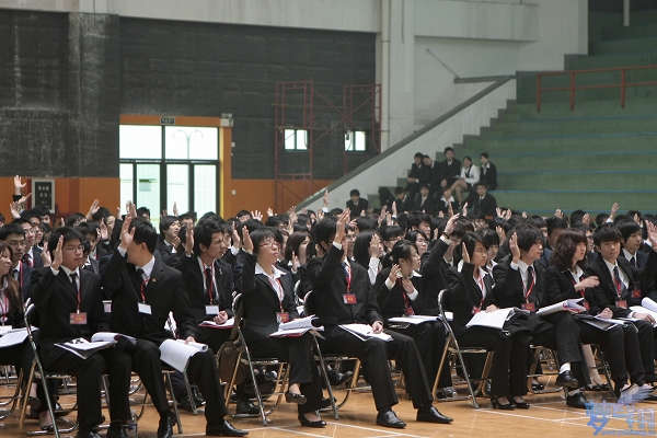 梦飞翔讯:(记者 吴伊婷 黄晓雪 摄影 常裕彬 陈锡桢) 3月13日,广东培正学院第十六次学生代表大会在婉兰体育馆2楼举行。大会分为预备大会和正式会议。 13日下午,正式会议召开,到场的嘉宾有院领导凌征海、朱海钧、张韵君、朱庆欢、元建毅、邓惠、阮霖、曾小亮、江伟、余可君;各系、室部分领导、广东省学联助理主席杨晶、华南理工大学汽车学院以及广州铁路职业技术学院学生会主席团代表。 正式会议首先由大会筹备委员会会务组组长李星凯作到会情况报告。接后,由主持人宣布大会开幕,全体起立,奏唱国歌。 会议第三项,学院院长凌征海致开幕词,院长讲到,学生会是学生群众的组织,是学生与学院沟通的桥梁,举行学生代表大会是要积极收集同学们对学院的意见,认真贯彻落实科学发展观,加强学生参与学院民主会议的积极性,繁荣校园文化。会议第四项,学院党委副书记朱海钧发言,副书记认为代表大会的260份有效提案,有助于学院的管理,必须认真对待,要加强我院的凝聚力、吸引力和战斗力,为我院增添新的生机与活力。会议第五项,由广东省学联助理主席杨晶到会致贺词,祝愿我院教育事业越办越好。 大会期间把投票选举分为6场,内容涉及院学生会章程、学生代表大会代表任期试行办法、院学生会工作报告、院学生会财务工作报告及选举产生院学生委员会。 会议的工作报告一致投票鼓掌通过,最后,院学生委员会选出代表14人,将当选为广东培正学院第十六次学生委员会委员。 最后,由共青团广东培正学院委员会副书记阮霖老师上台致闭幕词,院第十六次学生代表大会在《国际歌》的伴奏下完满结束。 与此同时13日上午,召开了学生代表会的预备会议,到场嘉宾有院学生会指导老师余可君,经济学系分团委学生会书记刘旭,广东行政职业学院、广州大学市政技术学院、广州工商职业技术学院和广东交通职业技术学院的学生会主席团,各学生代表团共268人以及学院的各校级组织代表们到场参加会议。 凌院长上台致词 各代表做投票决议